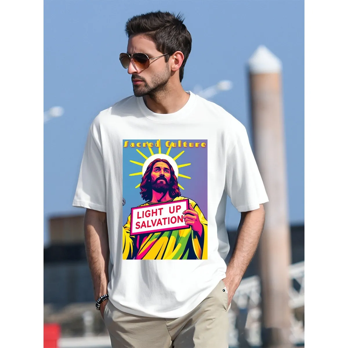 Light Up Salvation White Short sleeve Jesus Pop Art T-shirt